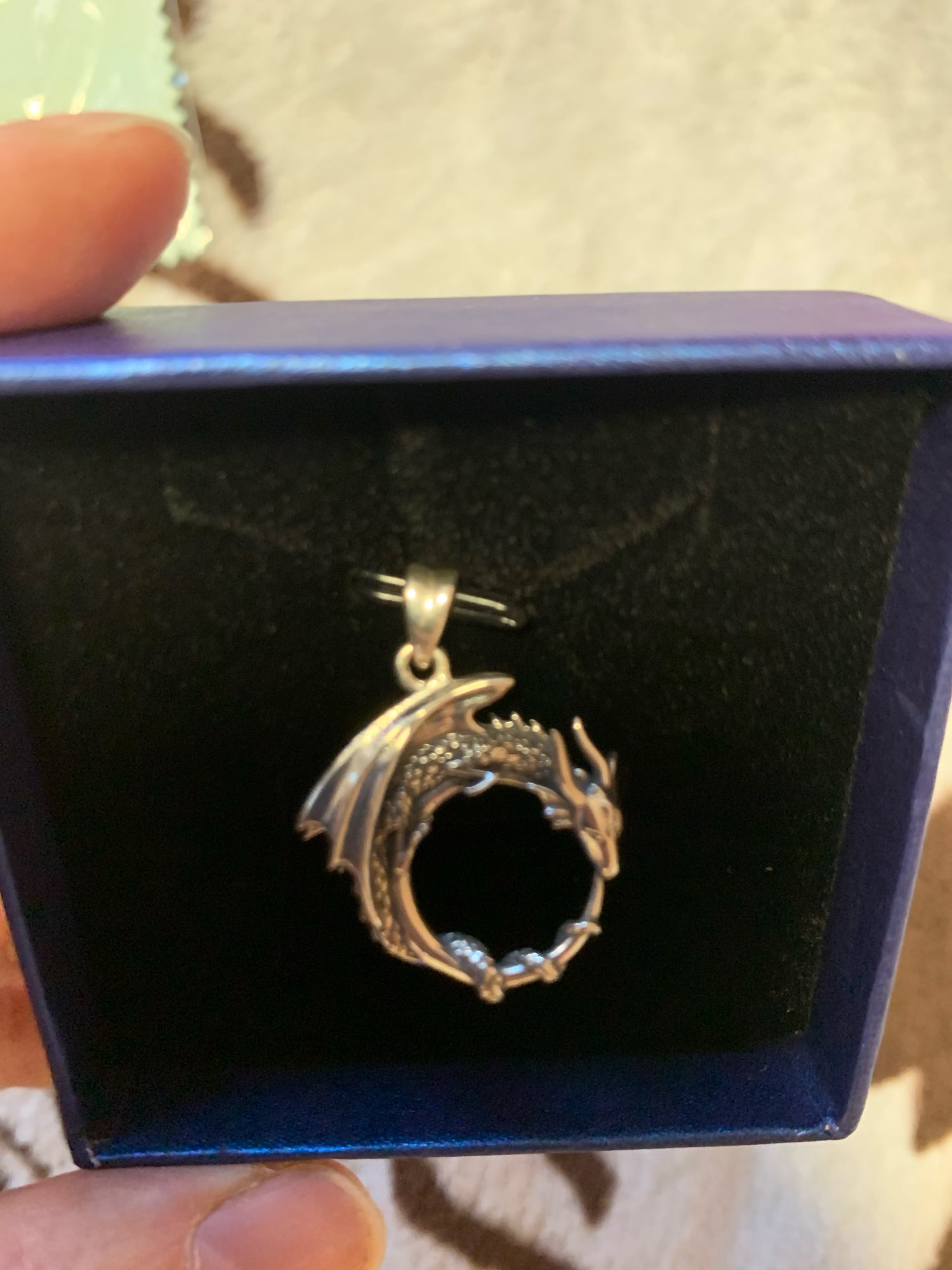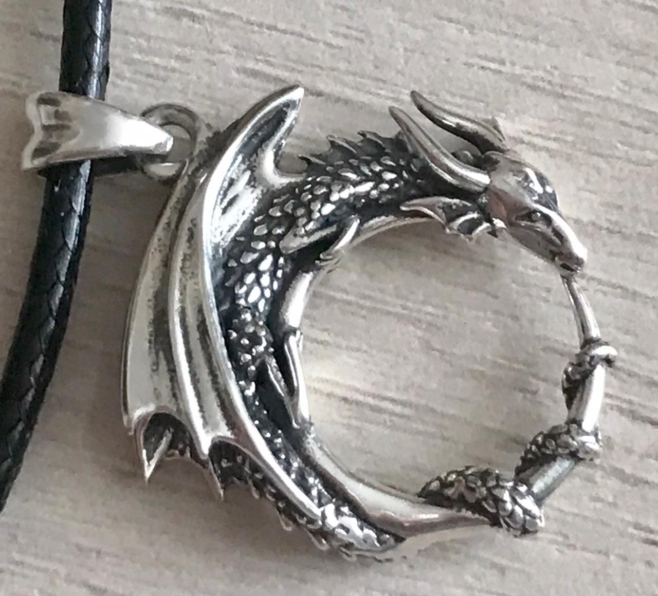 What could be better than a piece of silver jewelry to bring the magic of our favorite mythical creatures come to life? This sterling silver dragon pendant necklace is simplistic and modern and perfect for your next trip to the land of fairytales. All dragon fans must have this silver dragon pendant necklace in their collection of dragon-themed jewelry. A sterling silver dragon pendant on an 18″ chain. made of 925 silver, this dragon pendant is a bold addition to your dragon-themed jewelry. The dragon on this necklace is a symbol of strength and power, divine wisdom and knowledge. The silver dragon pendant is just as detailed as a dragon could be. The eyes pierce through its metallic scales, the horns stand proud and large, the mouth is open, ready to devour all near-by obstacles. It is a dangerous beast, one that surely fosters fear in all who see it. Makes a wonderful gift.