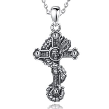 Sterling Silver Gothic Dragon Cross Necklace